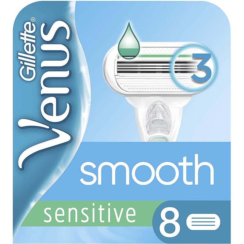 Gillette Venus Smooth Sensitive 8 Scheermesjes Het Gillette Venus Sensitive Smooth Scheermesje voor vrouwen is speciaal ontworpen voor de gevoelige huid. Venus Sensitive Smooth scheermesjes bevatten drie mesbladen die de rondingen volgen en een beschermende SkinElixir lubrastrip die huidirritatie voorkomt. Het Gillette Venus Sensitive Smooth scheermes staat garant voor een comfortabele scheerervaring en heerlijk zachte, glad aanvoelende huid.